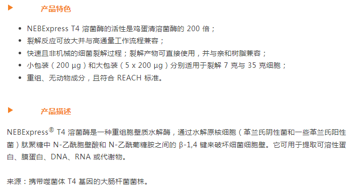 新(xīn)品發布:NEBExpress® T4 溶菌酶