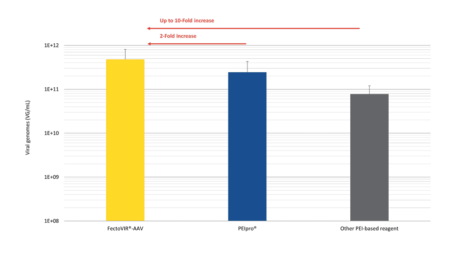 上圖:對比其他(tā)産(chǎn)品,FectoVIR®-AAV可(kě)提高10倍病毒産(chǎn)量